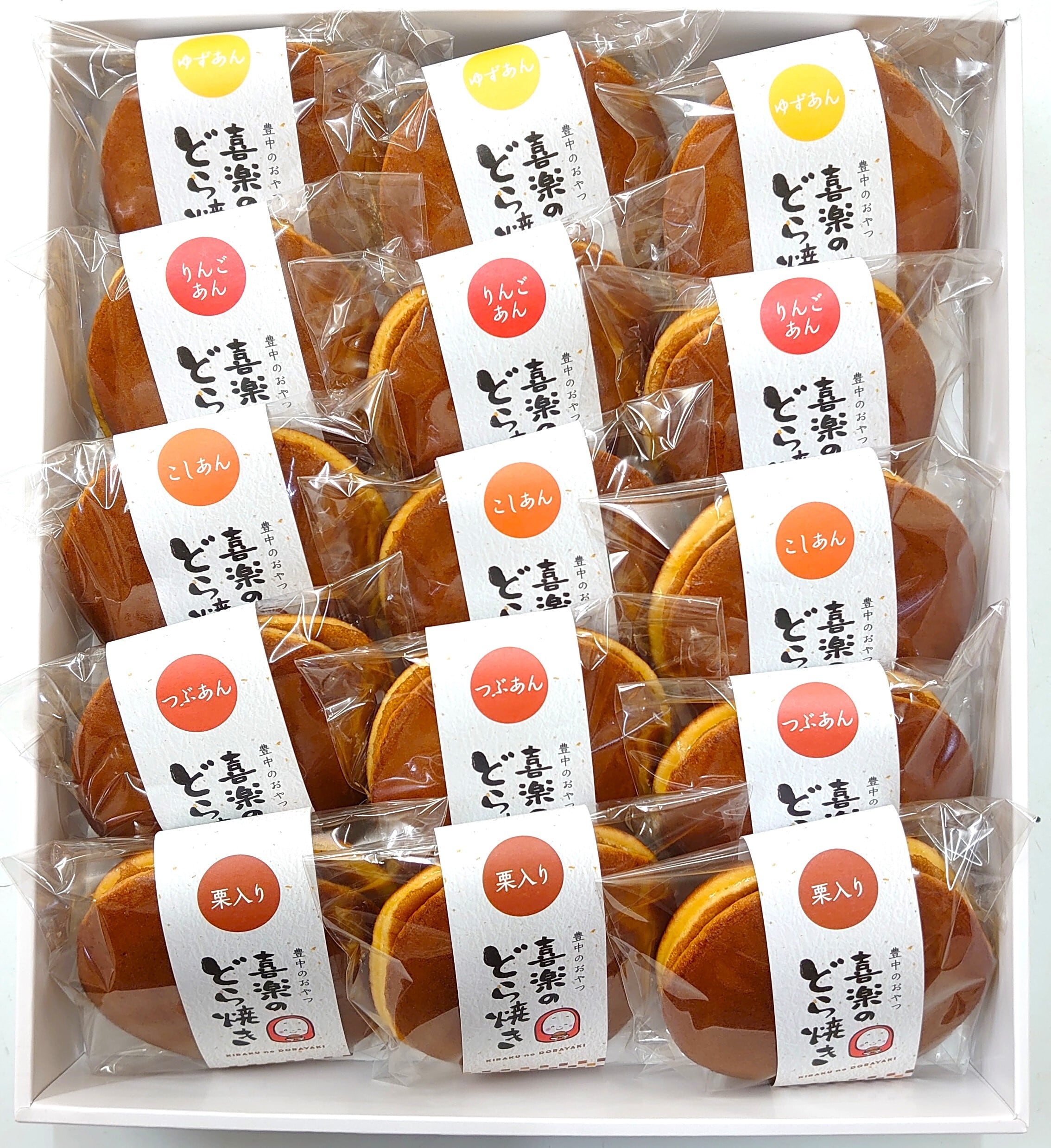 内容 粒あん3個、こしあん3個、ゆずあん3個、栗入り3個、りんごあん3個